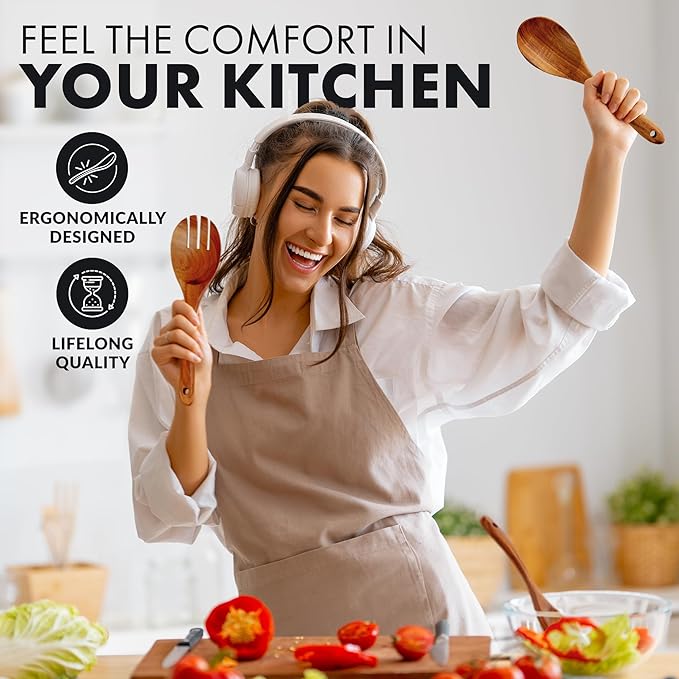- IDEAL GIFT FOR CULINARY ENTHUSIASTS: Crafted from teak wood, these Kitchen Utensils add a touch of sophistication to any culinary space. Whether for a housewarming, birthday, Christmas, or Thanksgiving, these Wooden Utensils make a thoughtful gift for cooks and chefs alike. Elevate any kitchen with this stylish and functional set, perfect for both professional and home kitchens.