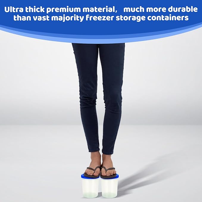 - PREMIUM DESIGN: Our freezer containers and lids are stackable, so it keeps your home/freezer/fridge organized. It's also easy to store when not in use, or for travel and transport.