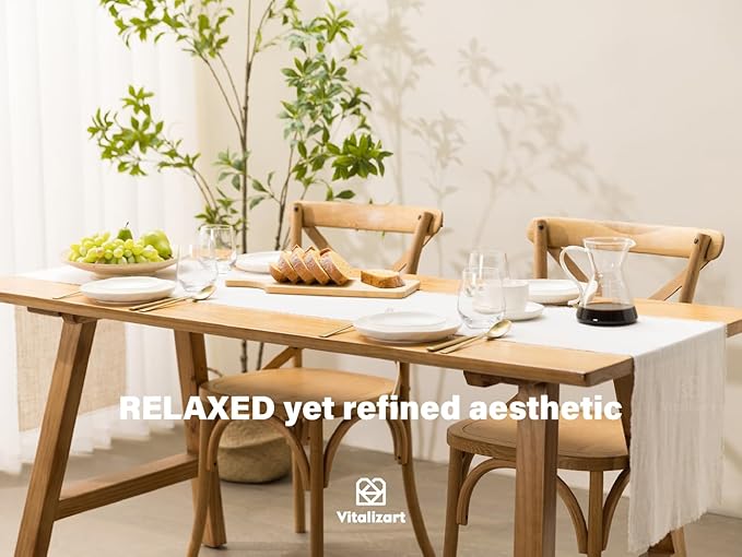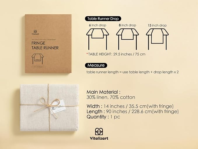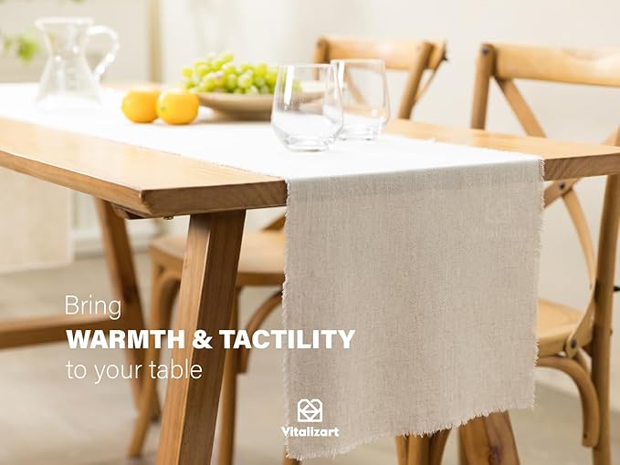 Vitalizart Beige Table Runner 14 x 90 Inches Long Slub Texture Cotton Linen Table Runner for Rustic Home Decorations Dining Room Wedding Decor Reception Bridal Shower Thanksgiving Christmas