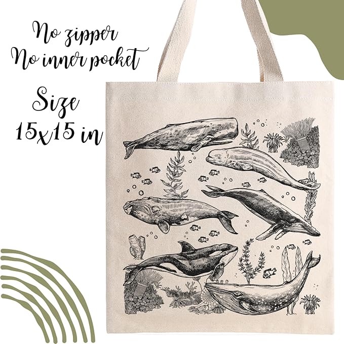 - TRUMPETIC Whales Tote Bag, Ocean Life Bag, Cotton Tote Bag, Eco-Friendly Tote Bag, Animal Bag Esthetic Canvas Tote Bag for Women, Cute, Reusable Cotton Bags , Gym, Shopping, Beach
