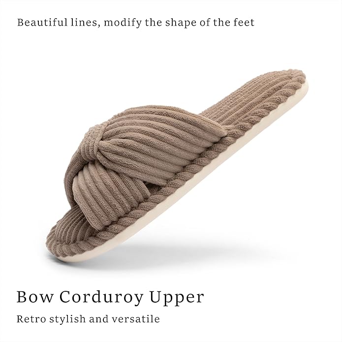 Chantomoo Slippers for Women Memory Foam House Womens Slipper Slides Home Bedroom Bathroom Spa Open Toe Corduroy Bow Slippers Cozy Comfortable