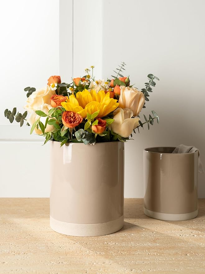 famiware Milkyway Kitchen Utensil Holder for Countertop, 7.2"+5.8" Ceramic Cooking Utensil Crocks for Counter, Utensil Organizer for Spatula & Spoon, Kitchen Decor, Set of 2, Cinnamon Brown