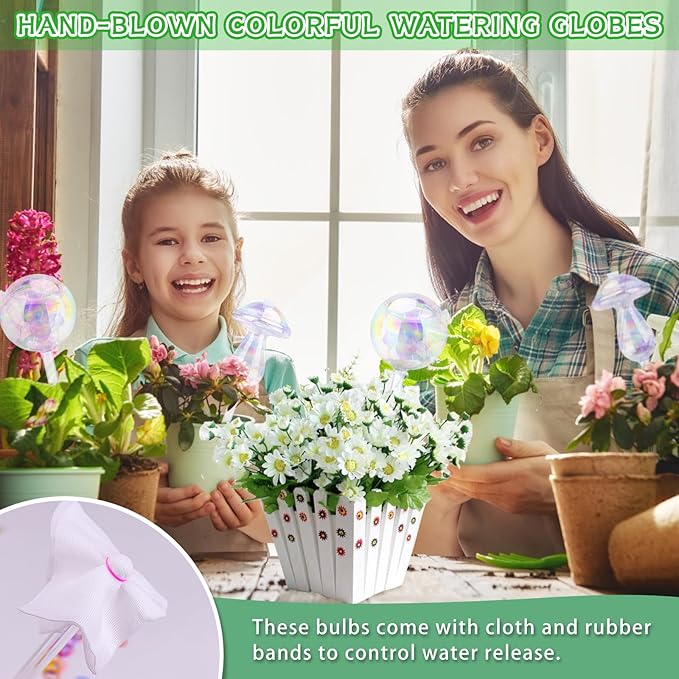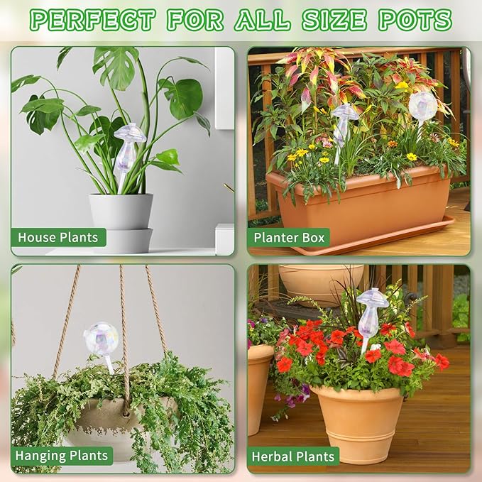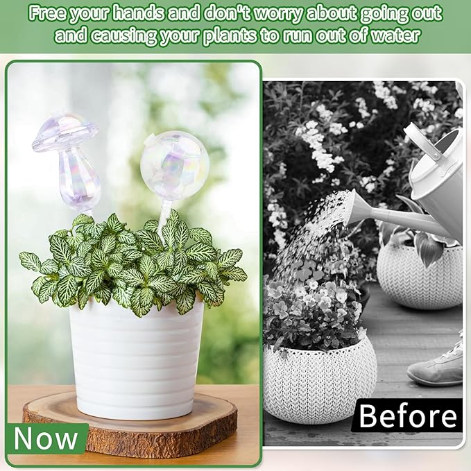 - Quality Material: Reusable hand blown quality glass ball/mushroom watering device allows your plants to absorb enough water as needed, helping you take care of your plants for a long time