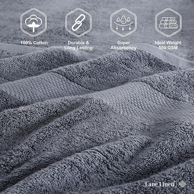 LANE LINEN 100% Cotton 2 Pack Bath Sheets (35"x66") - Ring Spun, Extra Large Cotton Bath Towels Set - Quick Dry, Soft & Absorbent Oversized Towel Set - Remains Soft After Multiple Washes - Cool Grey