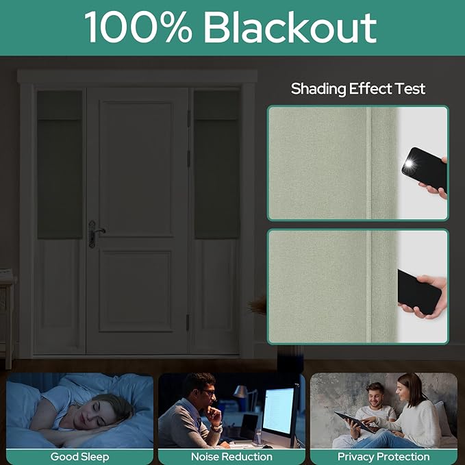 - 🌸100% BLACKOUT CURTAINS: HOMEIDEAS linen door curtains with the same color and texture on both sides without coating on the back. The environmentally dual-sided linen textured fabric can block out 100% of sunlight and UV rays and provide a good sleeping environment during the day.