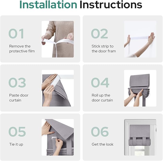 - 🌸EASY HANGING: The package includes 1 door curtain panel and 1 adhesive strip. It can be easily installed without any tools or curtain rods. Just follow our instructions picture to install, put the sticky strip on the glass, and join together with the sticking place on the door curtain panels firmly.