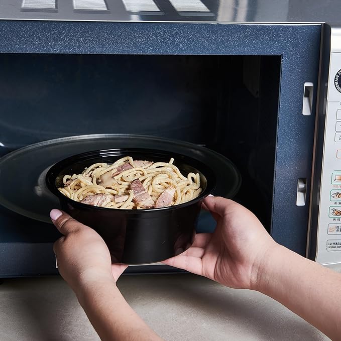 - MEAL-PREP MADE EASY: Black Salad bowls Deli Food Storage Containers with Clear Airtight Lids Leak Resistant, stack neatly, and feature a microwaveable bottom to make meal planning a breeze
