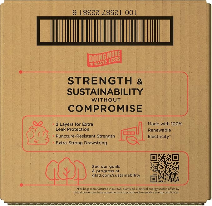 - FORCEFLEX TECHNOLOGY: Glad’s patented dual layer technology provides two layers of strength and stretch for 2X Leak Protection with double side seams and a reinforced bottom