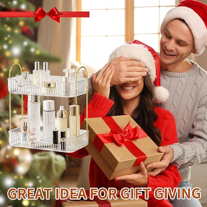 2 Tier Bathroom Organizer Countertop Makeup Perfume Tray Skincare Organizer for Bathroom Dresser Vanity (White)