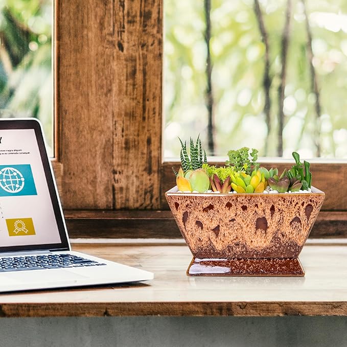 - 【Perfect Size】The package includes a planter pot with drainage in perfect size: 7.1'' *4.1'' * 3.7'' (L*W*H). For any quality problems, please feel free to let us know. Artketty will never disappoint any customer.(PLANTS NOT INCLUDED)