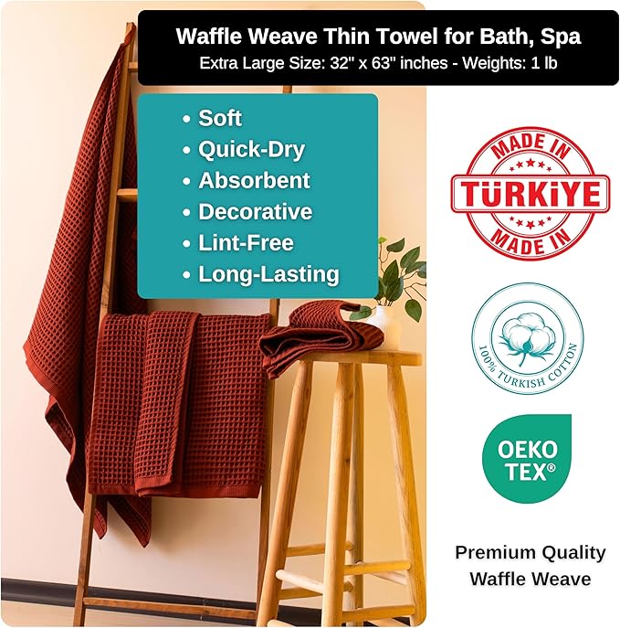 - Goodbye, damp, heavy towels! Our quick-dry waffle bath towels dry much faster than bulky terry, saving you time & enhancing freshness. The breathable weave stays odor-free, even in humid bathrooms. Enjoy a soft, lint-free, snag-free experience. Embrace Turkish-inspired waffle weave for timeless elegance. These luxury bath towels, with their honeycomb weave, add sophistication and functional style to any bathroom