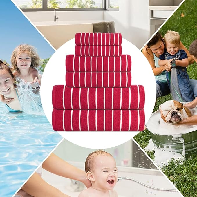 - INGREDIENTS: The set includes 2 pieces of washcloths measuring 12 x 12 inches, 2 pieces of towels measuring 16 x 28 inches and 2 pieces of bath towels measuring 27 x 55 inches.