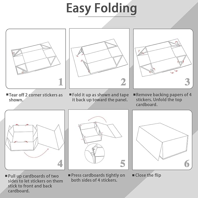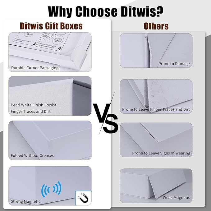 - Easy to Assemble: Ditwis white gift box with lids have a foldable design for easy storage, transportation, and saving space, tears off the white triangle sticker to easily assemble and glue the box.
