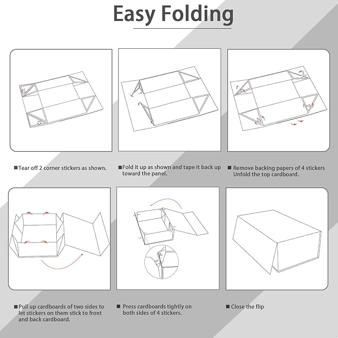 - Easy to Assemble: Ditwis black gift box with lids have a foldable design for easy storage, transportation, and saving space, tear off the white triangle sticker to easily assemble and glue the box.