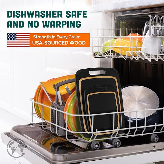- CUTTING BOARDS DISHWASHER SAFE - Keeping your cutting boards clean can be quite challenging. However, with our cutting boards set, it is not. The cutting boards are made with non toxic materials are designed to be dishwasher-safe & non porous unlike Bamboo Cutting Boards, which are oftentimes non hygienic and not dishwasher friendly.