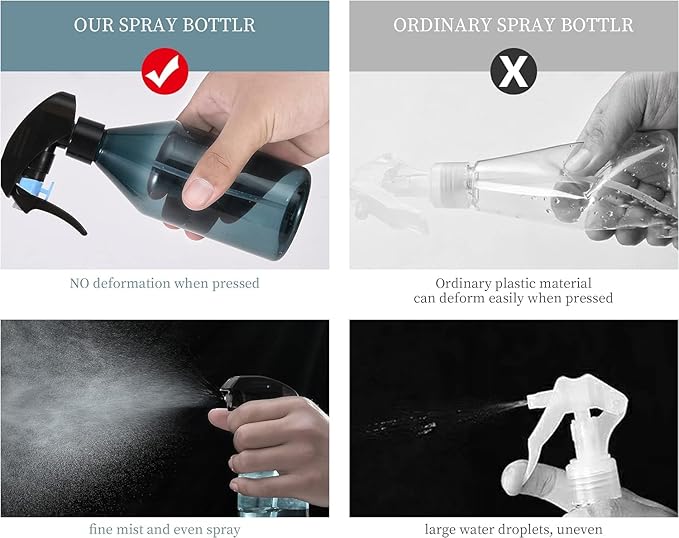 - FEATURES: Transparent , you can see how many liquid left clearly; safety buck and threaded neck prevents liquid from leaking efficiently; fine and homogeneous mist