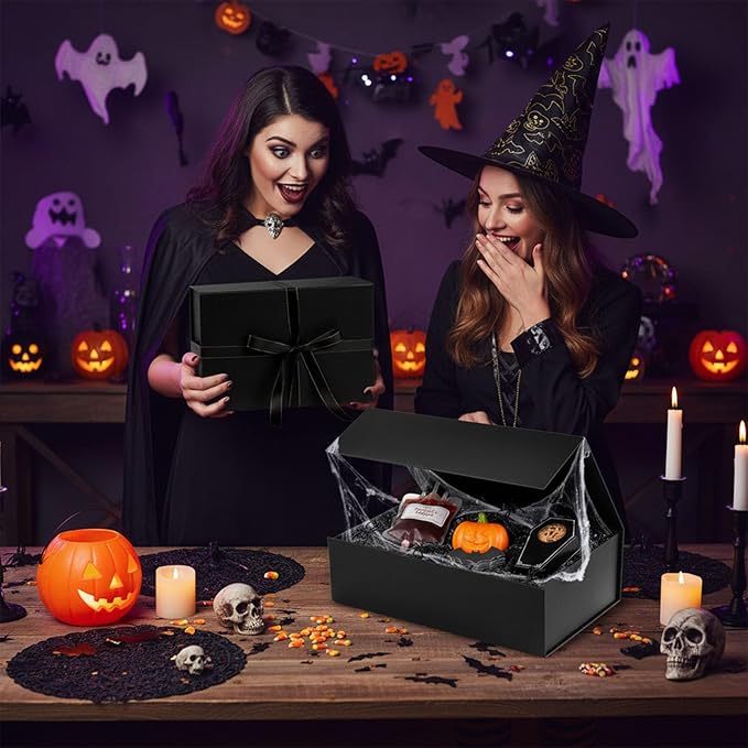 - Package Content - The package includes 1 black gift box with lid for presents, 1 gold ribbon, 1 greeting card, 1 envelope and 6 stickers. The generous gift box measures 14x8.7x4.3 inches, providing ample space for your thoughtful presents.