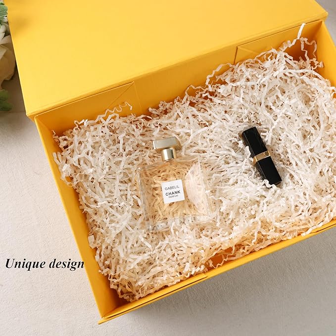 VGOODALL Yellow Magnetic Gift Box, 14x8.7x4.3inches with Lid and Ribbon, Perfect for Bridesmaid Proposals and Party Favors