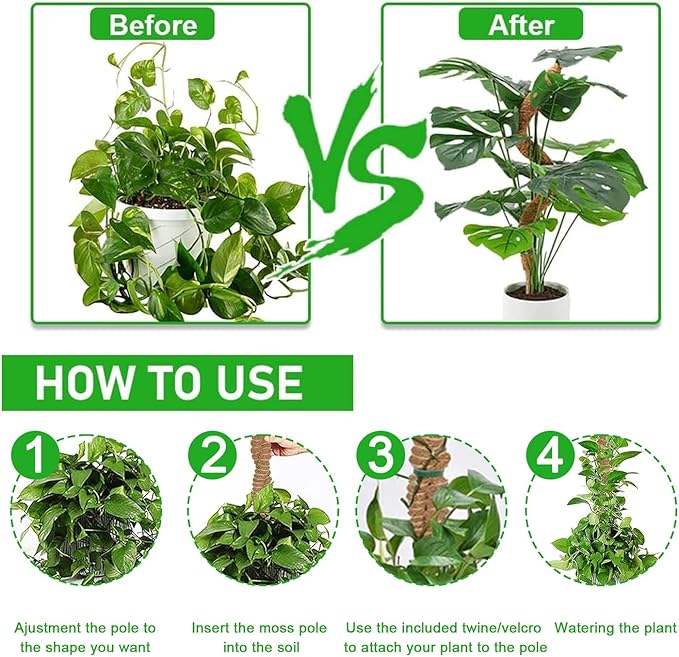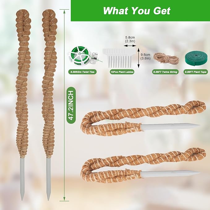- Value pack & service: Package includes 2 pcs of 47 inch moss poles, garden twist ties, jute rope, plant tapes, and plastic labels. Dedicated to providing quality moss poles for climbing plants and excellent customer service.