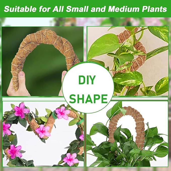 - DIY shape & easy to use: Bendable design for creating custom shapes like heart, arch, circle, snake, etc. Three-step installation - bend, deep the handle into soil, and fix the climbing plants stems to the moss poles.