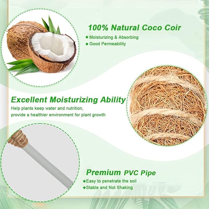 - Natural coco coir material: Plant poles made of natural coir fiber, clean, breathable, non-shedding, and handmade. Interior core made of solid aluminum bar, strong, rust-free, and easy to adjust shape.
