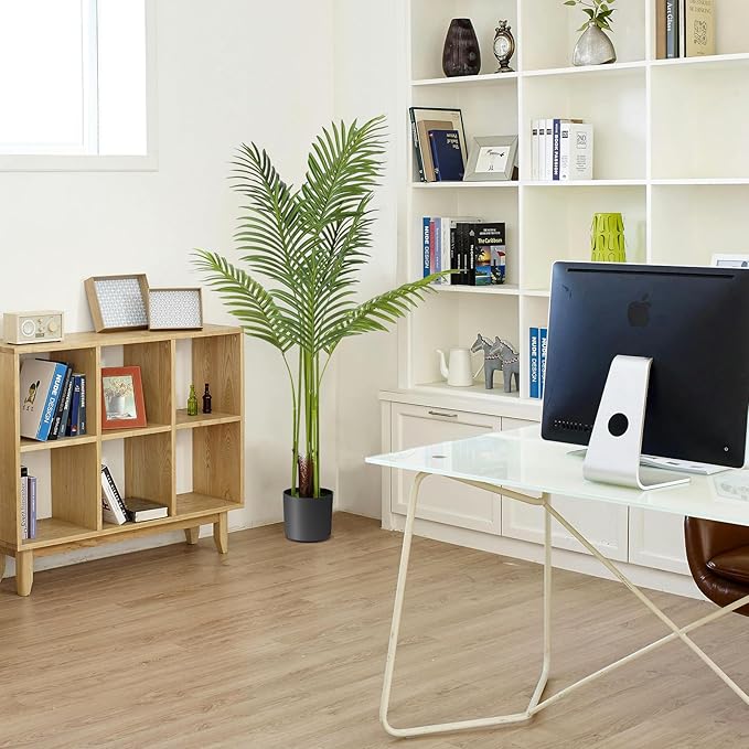 - [Lifelike Elegance for Any Space] : Bring the refreshing vibe of the tropics directly into your home or studio. This meticulously crafted Areca Palm is designed with stunning realism, maintaining its perfect, green appearance year-round. An instant upgrade to your living room, office, or podcast decor, it effortlessly brings a touch of natural presence to any setting.