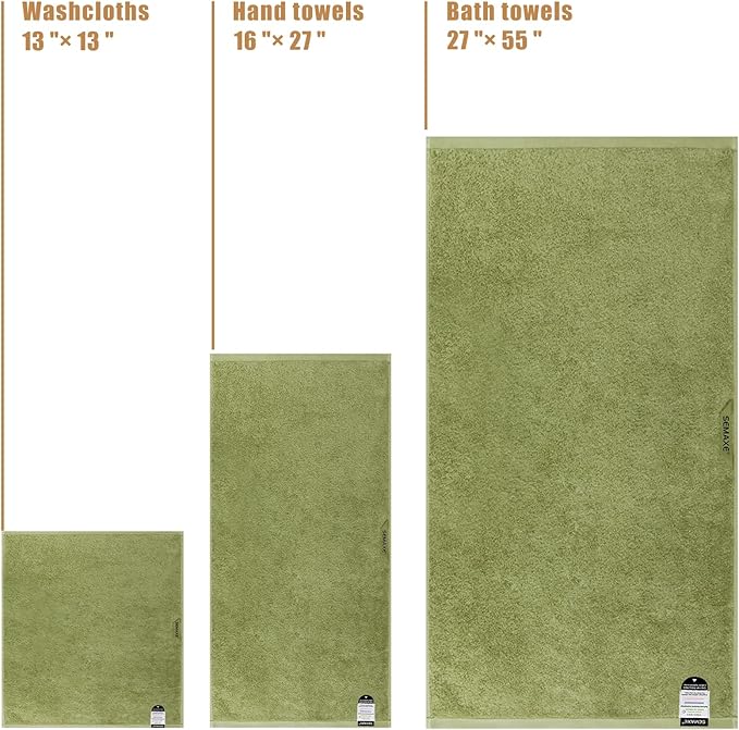 SEMAXE Sage Green Bath Towel Set, 100% Cotton Bathroom Towels with Hanging Loops, Soft & Absorbent, 8 Piece Towel Set Include 2 Bath Towels, 2 Hand Towels, 4 Washcloths