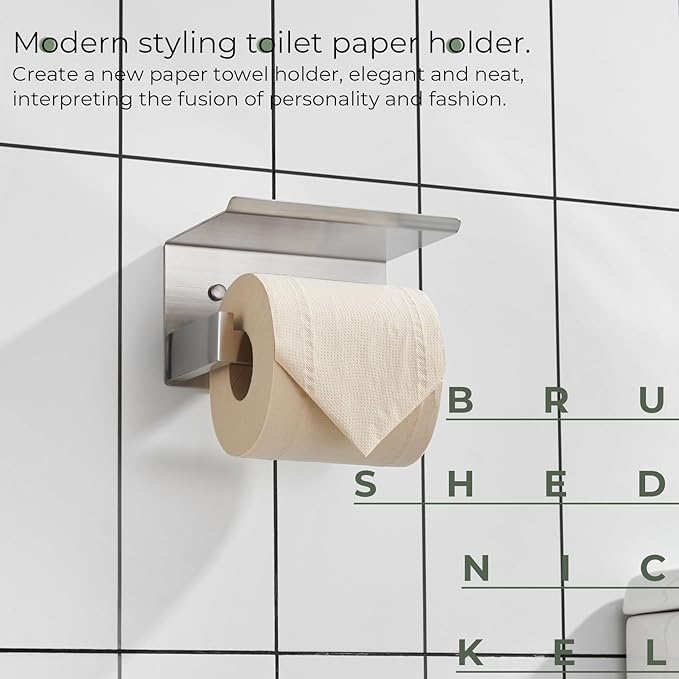 KOKOSIRI Toilet Paper Roll Holder Brushed Nickel Toilet Paper Holder with Shelf Stainless Steel Bathroom Dispenser Wall Mounted, B2010BR