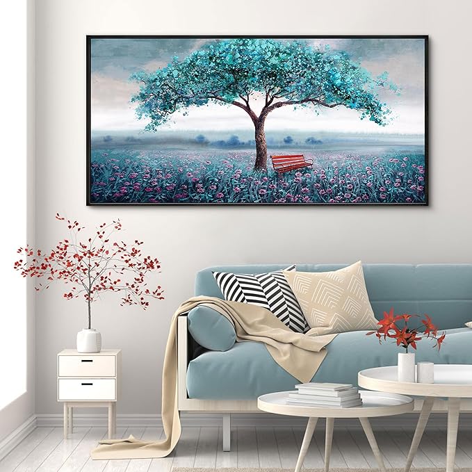 - Extra large tree wall art size:29x58 inches,black frame wall art for living room wall decor canvas picture artwork for wall.