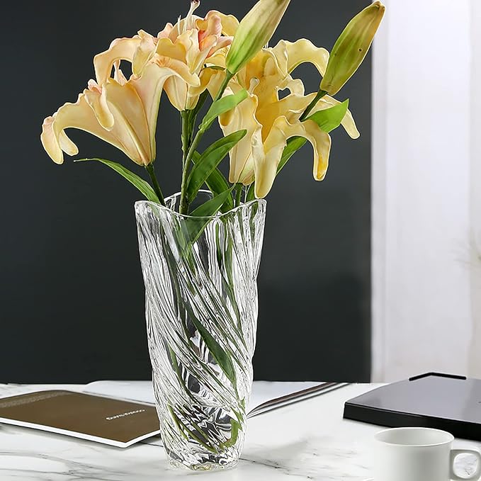 Glass Vase,Elegant Spiral Decorative Centerpiece for Home, Office,Wedding, Stylish Blown Glass Flower Vase, Clear