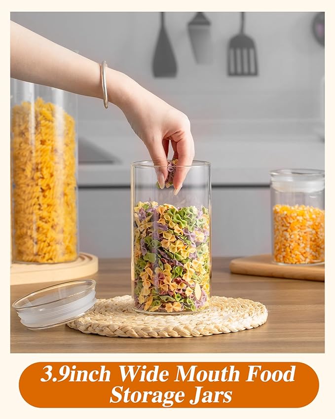 - MULTIPLE CAPACITY OPTIONS: ZENS glass kitchen canisters are are available in 7 deferent diameter sizes, great for you to mix and matching nicer looking of your kitchen counter. The small jars are great for spices or loose tea. while the wide mouth jars are great for cereal, pasta and flour and all other dry foods. It's dishwasher and microwave safe.