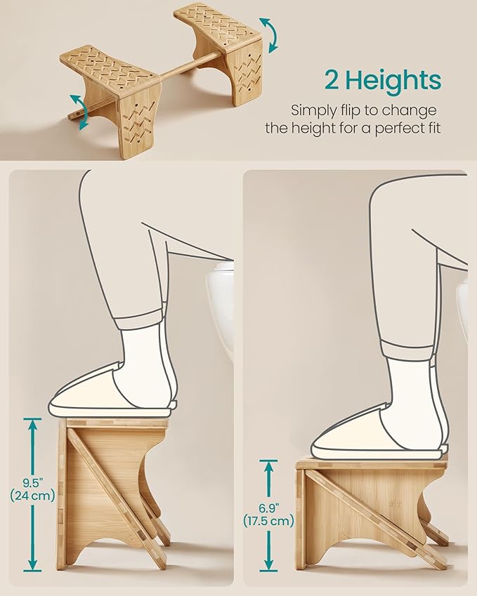 SONGMICS Bamboo Toilet Stool, Adjustable Poop Stool with Non-Slip Grooves, Height Convertible to 6.9 or 9.5 Inches, Squat Potty Stool for Bathroom, Space-Saving, Light Bamboo UBCB111N01