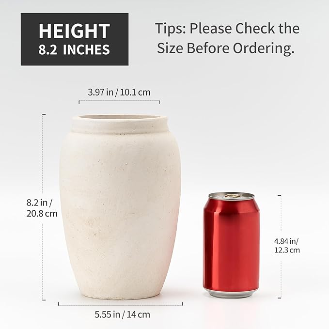 Ceramic Vase, 8.2 Inches Vintage Pottery White Vases, Rustic Home Decor, Farmhouse Terra Cotta Vase for Living Room, Entryway, Floor, Holiday Wedding Christmas New Year Gifts-Beige