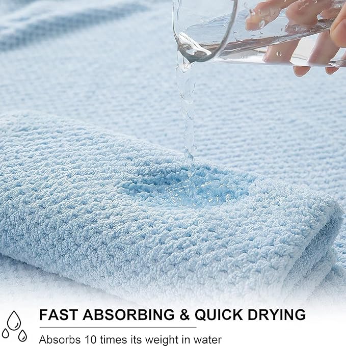 8-Piece Bath Towel Set, 2 Extra Large Bath Towel Sheets, 2 Hand Towels and 4 Washcloths - Highly Absorbent Quick Dry Microfiber,Ultra Soft Towel Set for Bathroom, Waffle Weave Design, Pack of 8(Blue)