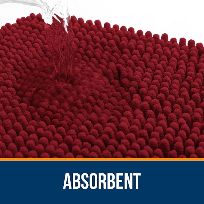 OLANLY Bathroom Rugs 44x24, Extra Soft Absorbent Chenille Bath Rugs, Rubber Backing Quick Dry, Machine Washable Bath Mats for Bathroom Floor, Tub and Shower, Home Decor Accessories, Red