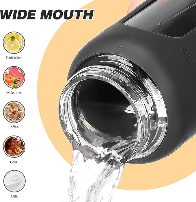 - CUP HOLDER FRIENDLY- Choose the NOLOGLAZIC glass water bottles keeps you hydrated. Moreover, it fits most car cup holders, making it the perfect companion for drivers. The wide-mouth design makes it easy to fill with ice cubes and fruits, and easy to clean daily.