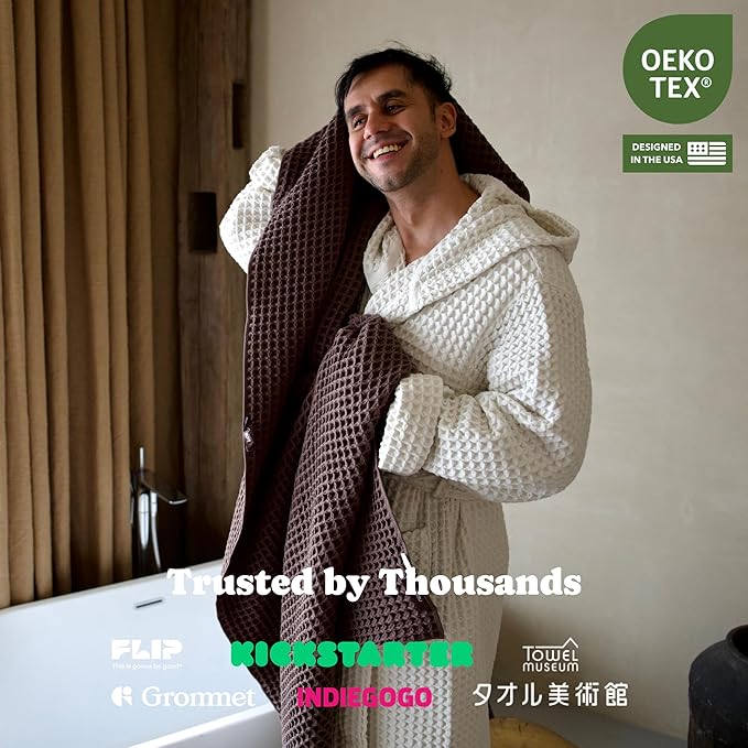 - A dry towel is a clean towel. The airy waffles effectively prevent the multiplication of odor caused by bacteria and fungus. You will never reach out to a wet, musty towel after a shower anymore.