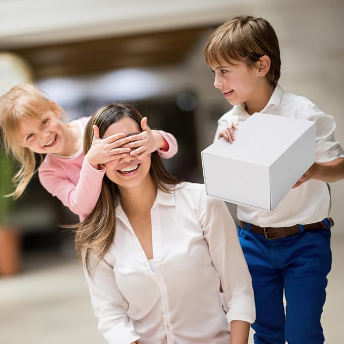- Easy to Assemble: These white gift boxes with lids have a foldable design for easy storage, transportation, and saving space, tear off the white triangle sticker to easily assemble and glue the box.