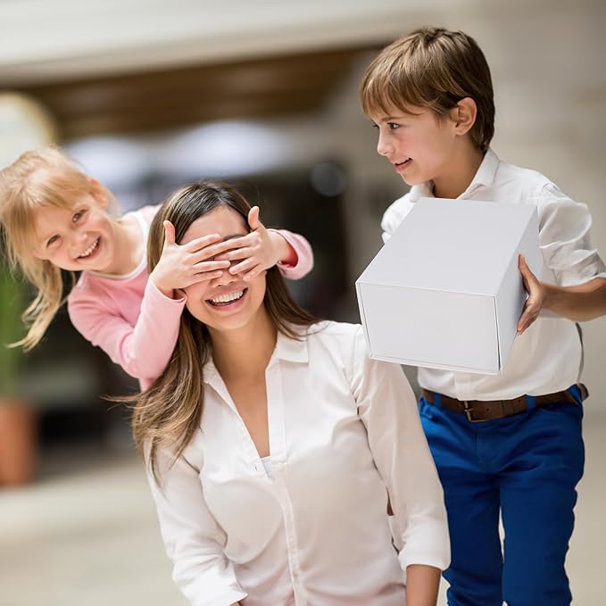 - Easy to Assemble: These white gift boxes with lids have a foldable design for easy storage, transportation, and saving space, tear off the white triangle sticker to easily assemble and glue the box.