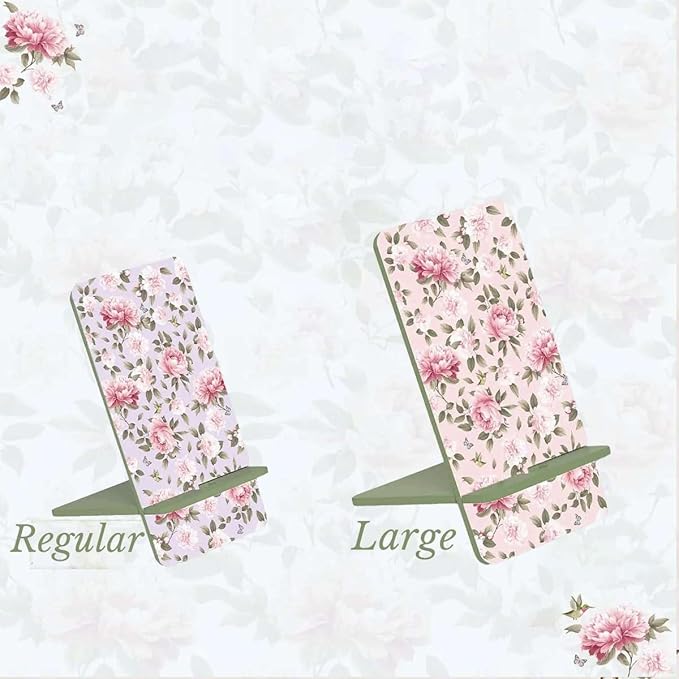 Wooden Pink Cell Phone Stand,Universal Phone Holder Stand Charging Hole Compatible with All Phone iPhone14,Smartphones,Facetime Holder for Desk 6"x 3.15"Inch Pink Peonies (Regular)
