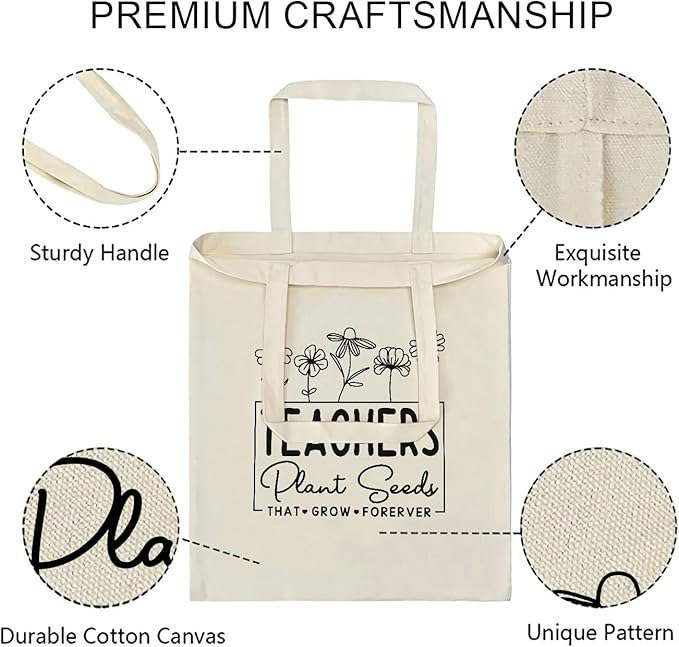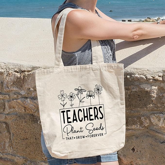 - Teacher Appreciation Gifts Canvas Tote Bags Aesthetic Travel Beach Bag Summer Reusable Grocery Shopping Bag, Gifts for Women, Thank You Teacher Gifts from Student Teachers Plant Seeds