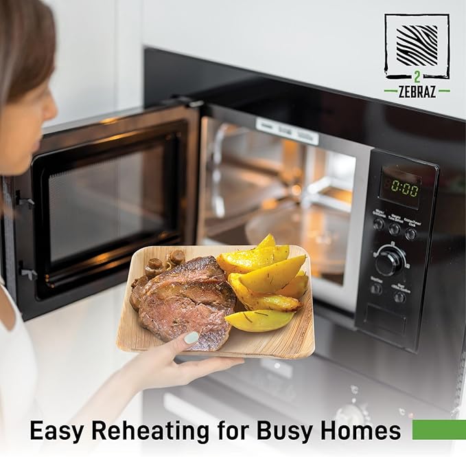 - Exceptional Durability: Stronger than paper and plastic plates; leak-proof and sturdy to handle a variety of foods without bending. Microwave safe for added convenience.