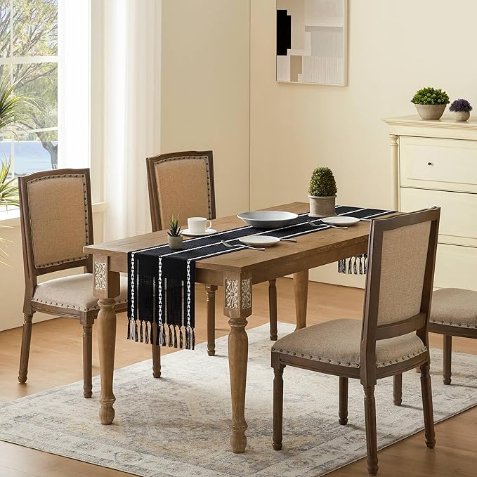 - Refresh the look of your table with this boho table runner, impressing guests at whether a casual dinner or special event, putting it in your dining room for that farmhouse or boho look. It can not only dress up a table, but also dress up your feeling.