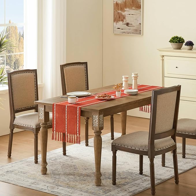 - Refresh the look of your table with this boho table runner, impressing guests at whether a casual dinner or special event, putting it in your dining room for that farmhouse or boho look. It can not only dress up a table, but also dress up your feeling.