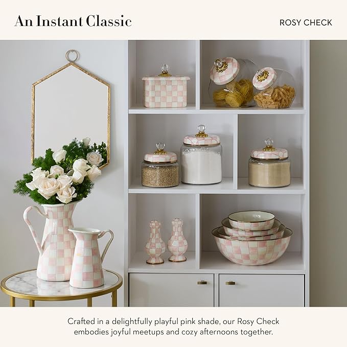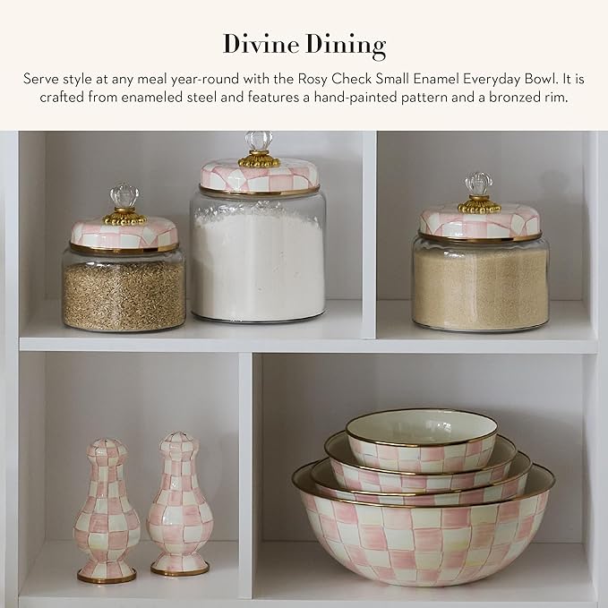 MACKENZIE-CHILDS Enamel Everyday Bowl, Serving Bowl for Entertaining, Small, Pink-and-White Rosy Check, Set of 1