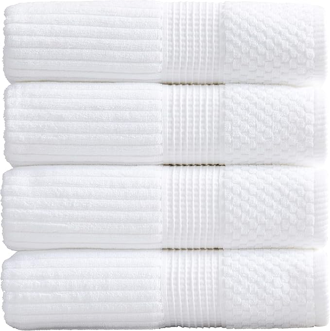 Springtree Home 100% Cotton Bath Towel Set of 4 | Super Soft & Absorbent with Quick-Dry Fibers | 4 Bath Towels | Textured and Durable Cotton | Krista Collection - Bright White