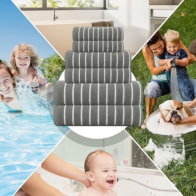 - INGREDIENTS: The set includes 2 pieces of washcloths measuring 12 x 12 inches, 2 pieces of towels measuring 16 x 28 inches and 2 pieces of bath towels measuring 27 x 55 inches.