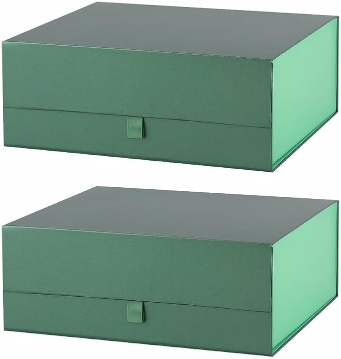 2 Pcs Large Gift Box 13.5x11.8x4.7 Inches, Green Gift Boxes for Presents with Magnetic Closure Lid, Luxury Gift Box Rectangle Collapsible Boxes for Gift Packaging