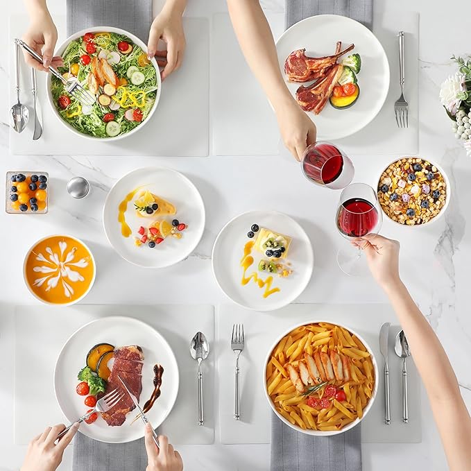 - 【WHAT'S IN THE BOX】MALACASA 24 Pieces Dinnerware Sets for 6 - Includes 6 x 10.25'' Dinner Plates, 6 x 8.25'' Salad Plates, 6 x 42 oz Pasta Bowls and 6 x 26 oz Cereal Bowls. Serve a variety of dishes, including dinner, dessert, salad, soup, and appetizers, catering to your diverse dining needs.