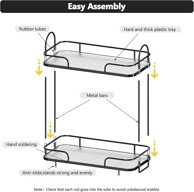 - 【Strong and Durable】The frame is a metal type material,each connection is hand welded.Due to the material, it will not be affected by water or moisture in the bathroom.It is sturdy that no wobbling or twisting, and the clear trays fit snugly to the lower and upper tiers.The wavy line surface on the trays make certain that items do not slip through.